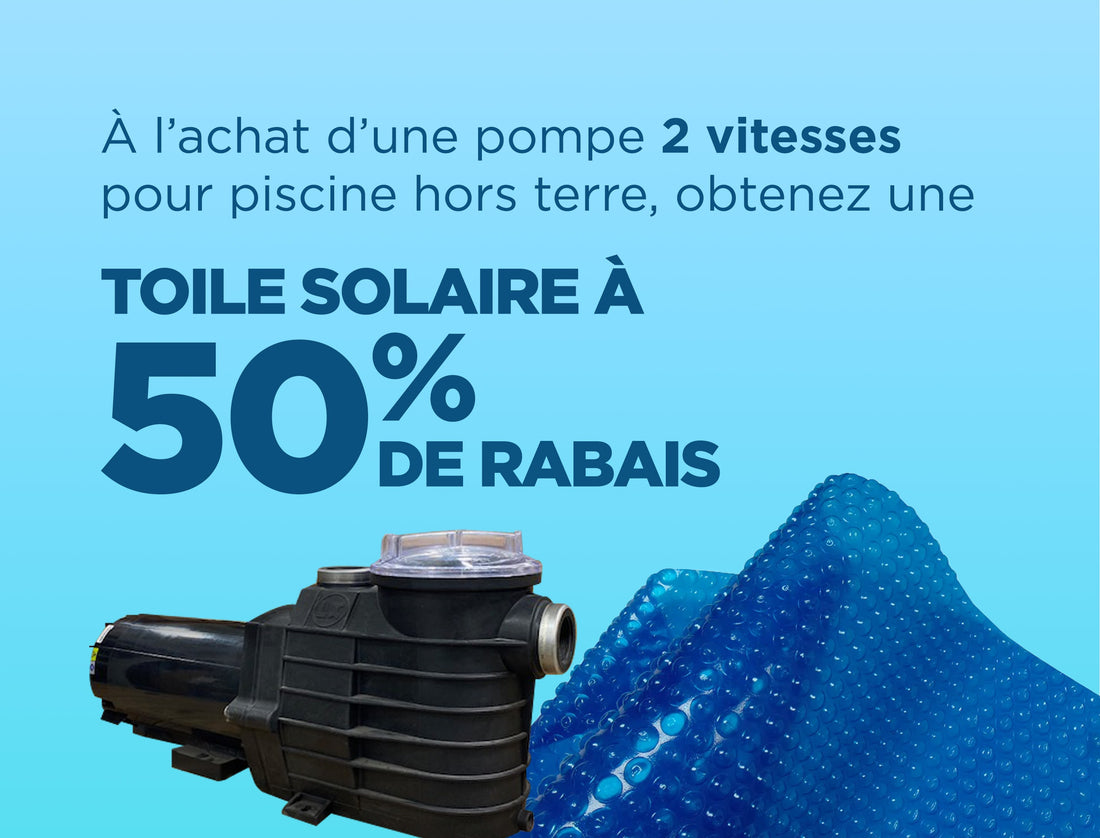 Offre exclusive : 50 % de rabais sur la toile solaire à l'achat d'une pompe 2 vitesses pour piscine hors terre.