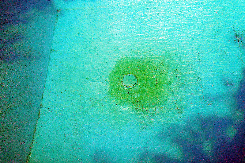 Apparence : L’eau prend une teinte verte foncée, noire ou brunâtre, souvent accompagnée de glissance sur les parois.