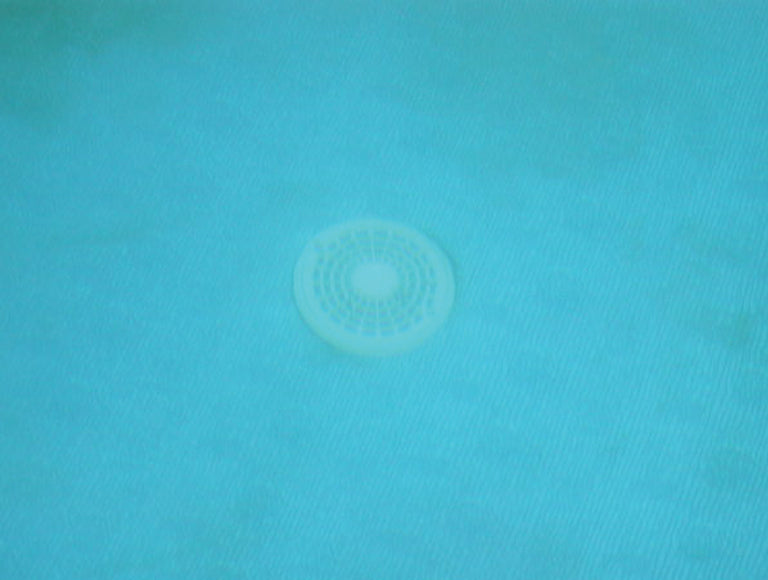 Apparence : Taches brunes, jaunes, vertes ou noires localisées sur les marches ou dans les coins de la piscine.