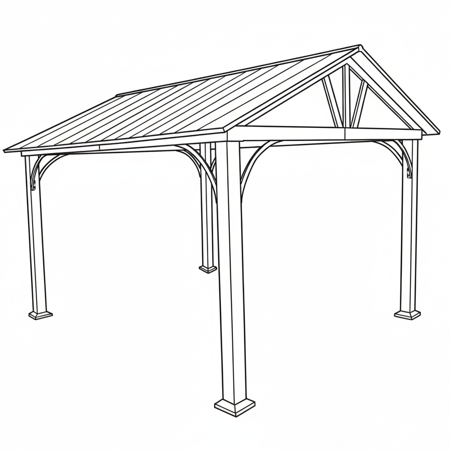 Innovaqua 10′ x 12′ Double-Slope Pavilion Opt for absolute strength with this pavilion featuring 120 mm steel posts and a double-slope galvanized steel roof. Designed to withstand the toughest weather conditions, it offers long-lasting protection and a modern industrial design for your outdoor space.