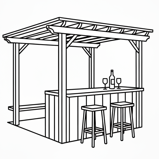 Innovaqua 10' x 12' Pavilion with Bar: Create the ultimate entertaining space with this unique pavilion featuring a built-in 10-foot bar. Combining the warmth of cedar poles with the strength of a galvanized steel gable roof, it offers a welcoming and robust relaxation area for all your outdoor gatherings.