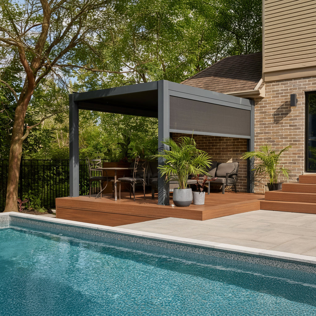 - Black textilene sunscreens for privacy and UV protection (optional).