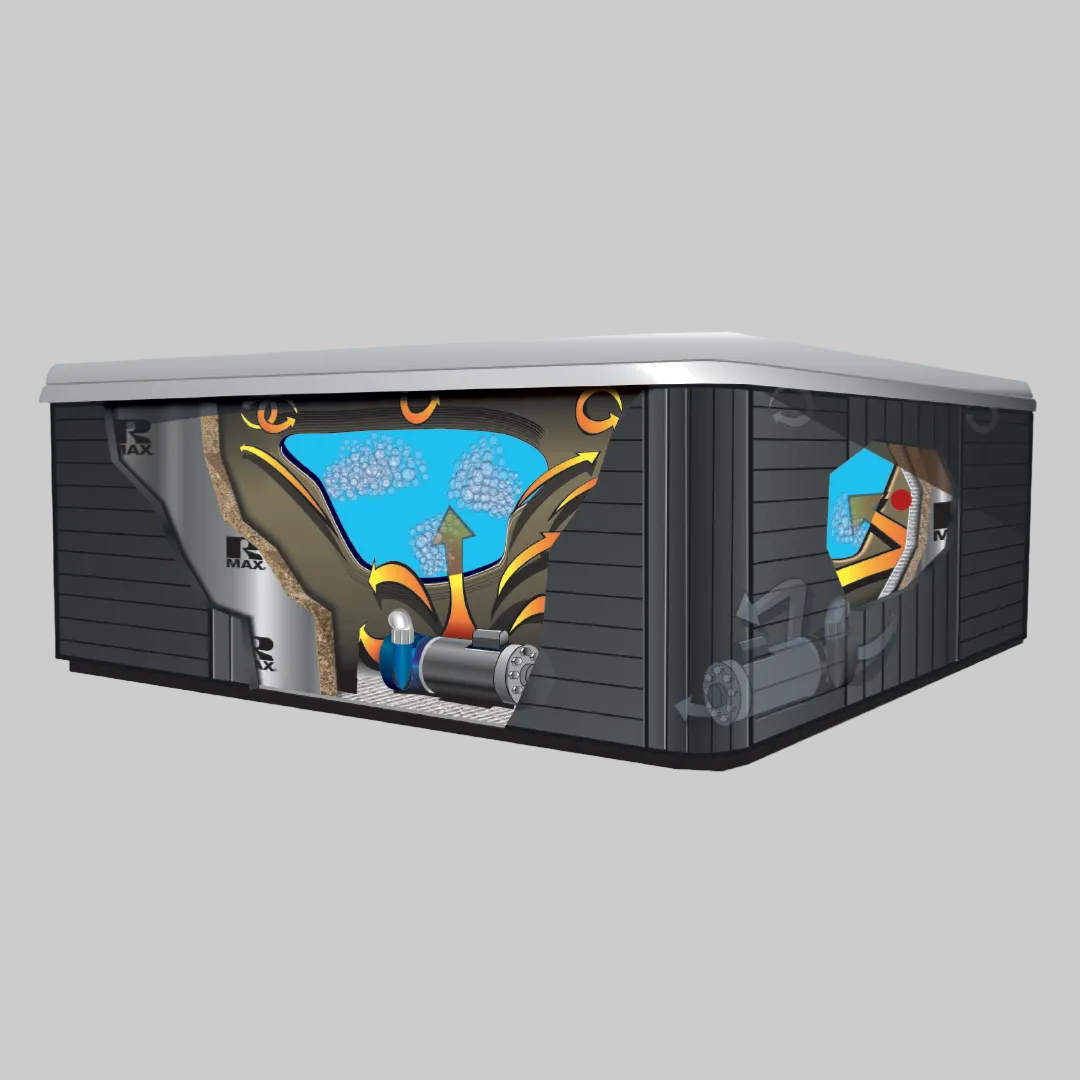 - RMAX-3 is a closed-cell polyisocyanurate panel with aluminum facings and the spa is reinforced on all sides.