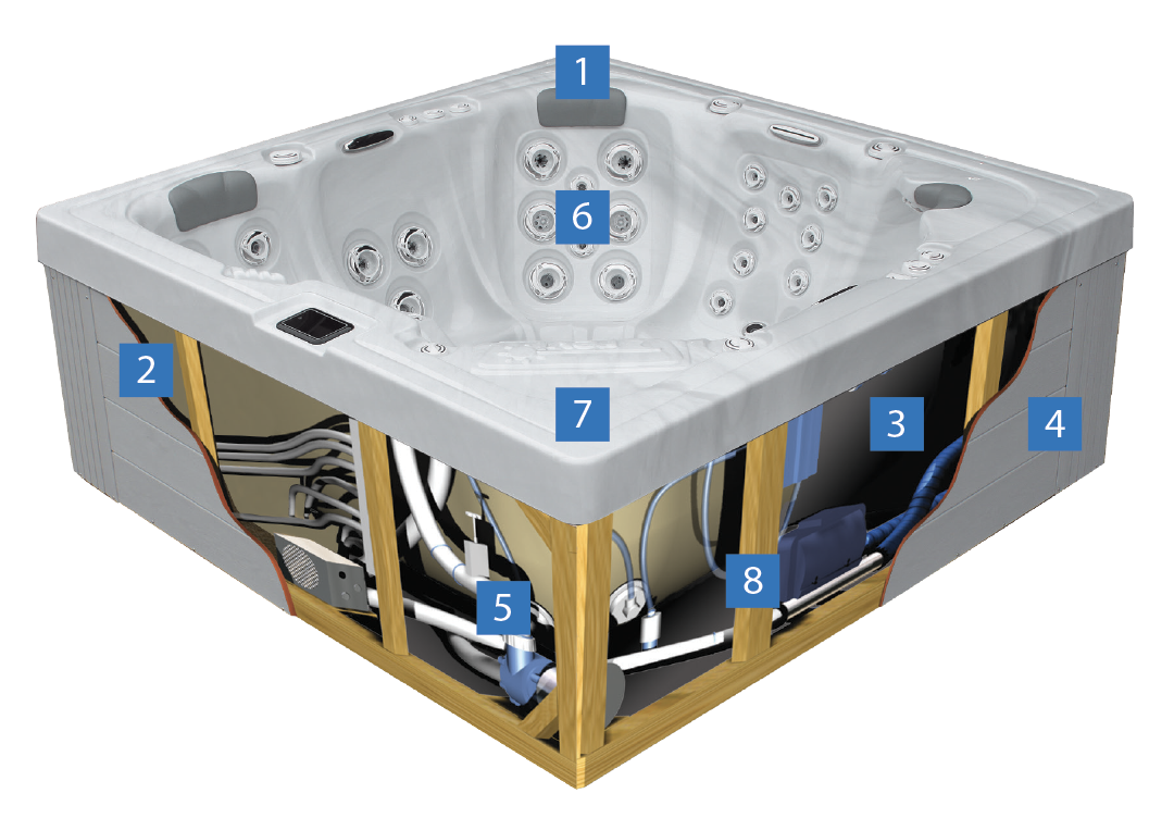 Pressure-treated wood forms the foundation of every spa structure. It is designed to withstand the elements for at least half a century!