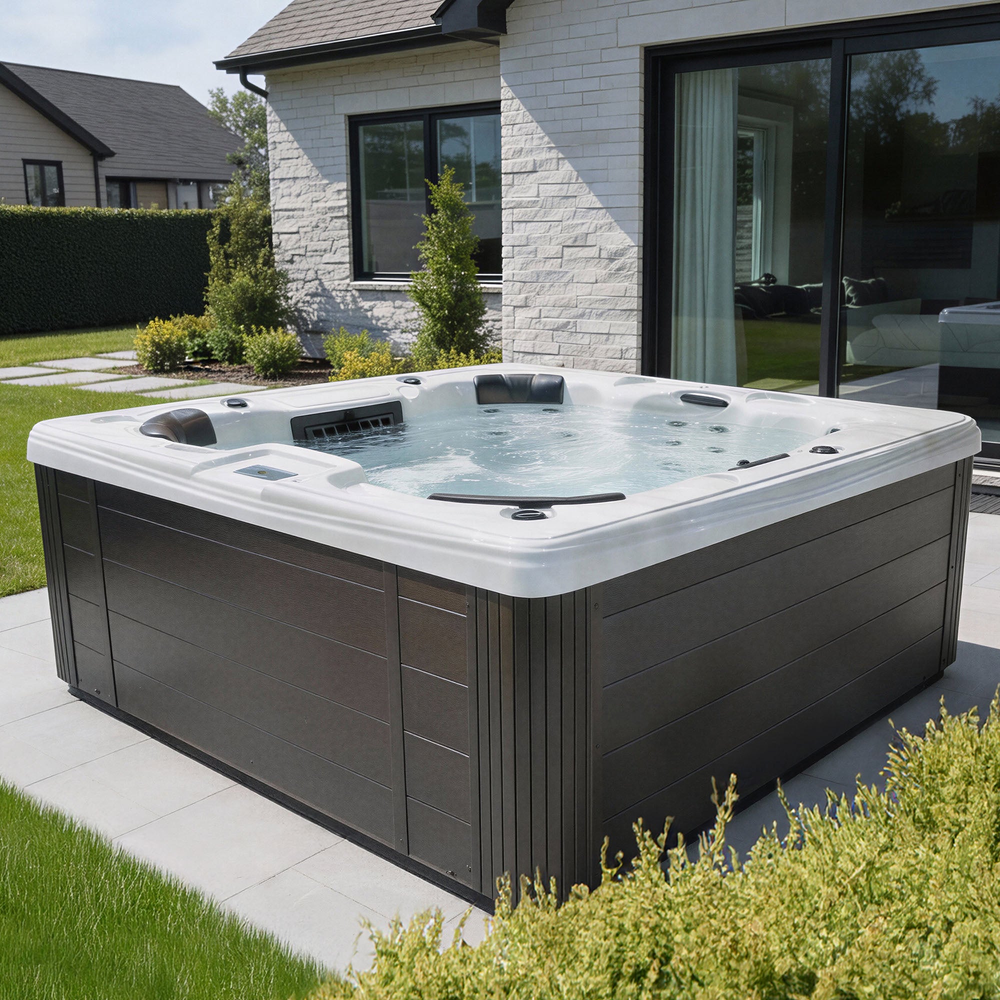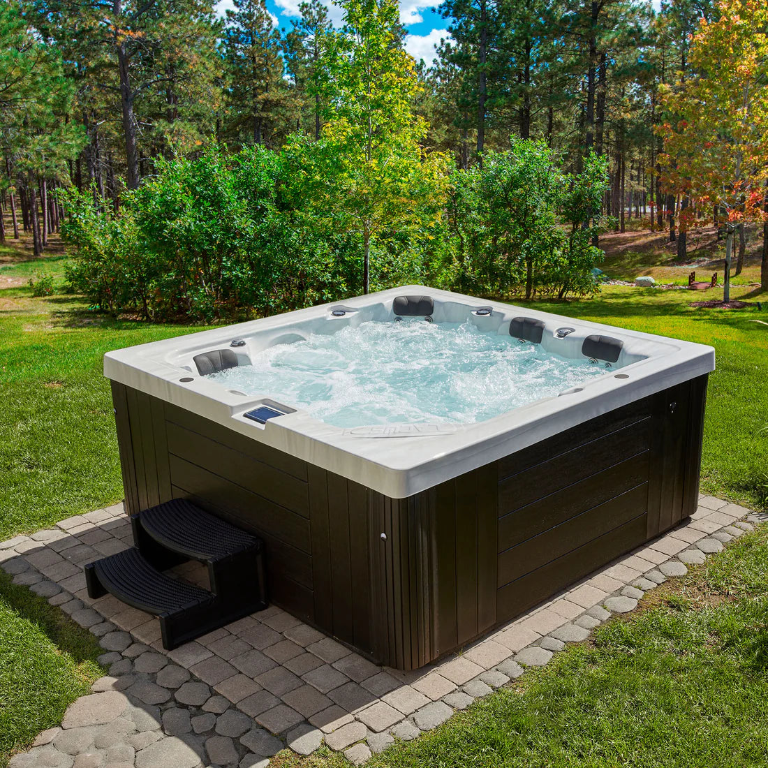 Conçu pour accueillir jusqu’à quatre personnes, le Spa Trévi E-CO est un spa compact et polyvalent qui s’installe facilement dans une cour, sur une terrasse ou un balcon. Il offre une expérience de détente complète grâce à ses 20 jets de massage, ses fontaines européennes, son éclairage DEL sous-marin, ses appuie-têtes rembourrés et son clavier numérique K.362.