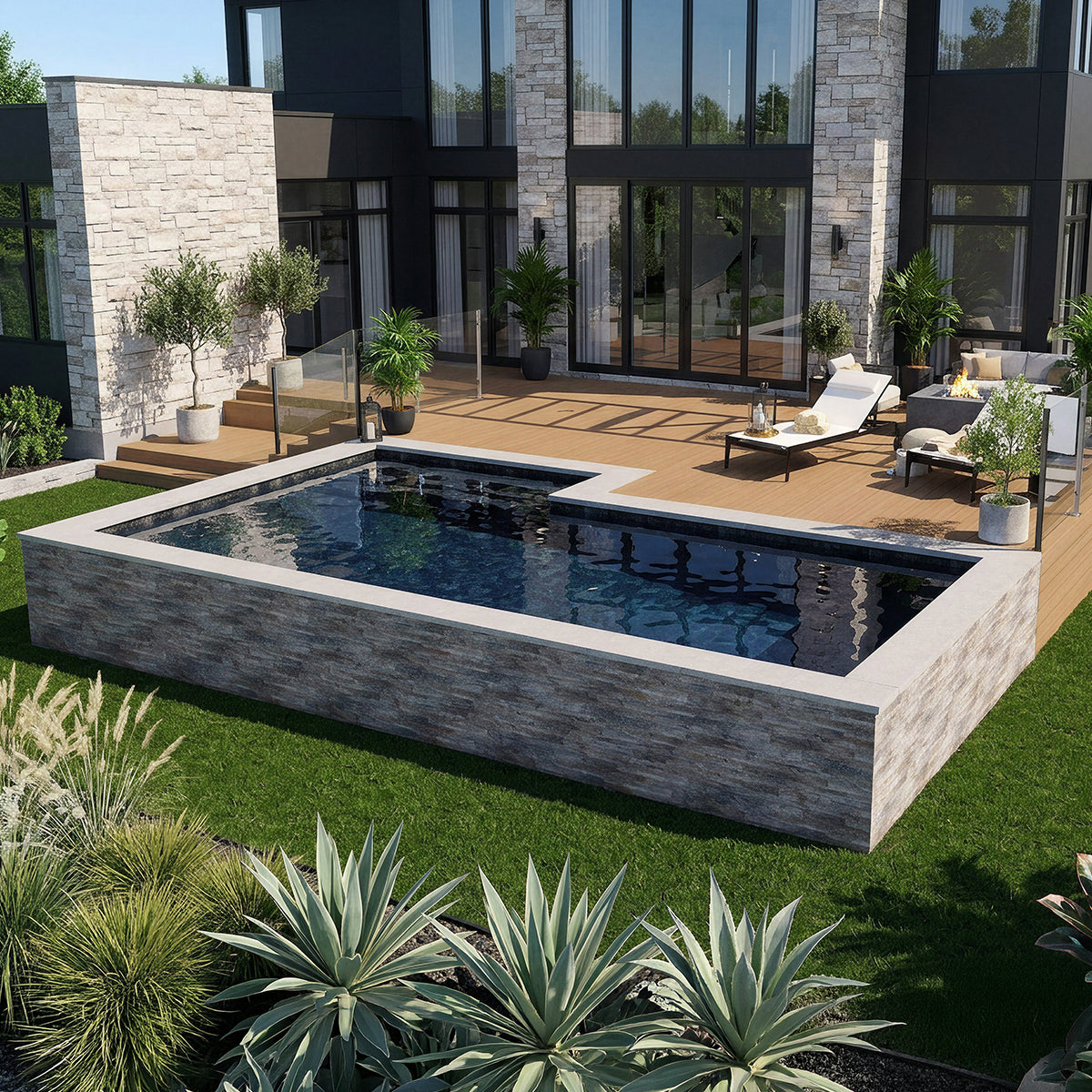Avec son look moderne et raffiné, la Trévi Futura vous en mettra plein la vue. Sa structure de béton unique offre une solidité à toute épreuve et une flexibilité qui permet une installation sur mesure pour s’agencer à tout type de terrain et de décor.