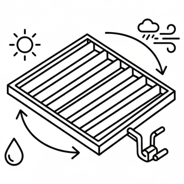 Spacieuse et épurée, cette pergola ajoutera une touche d’élégance et de modernité à votre décor extérieur. Elle est durable et d’une grande stabilité grâce à ses poteaux de six pouces de large. Son toit est muni de persiennes orientables pour vous protéger des intempéries et rayons UV. Deux options s’offrent à vous : seulement la structure, avec un ou des écrans solaires en textilène.