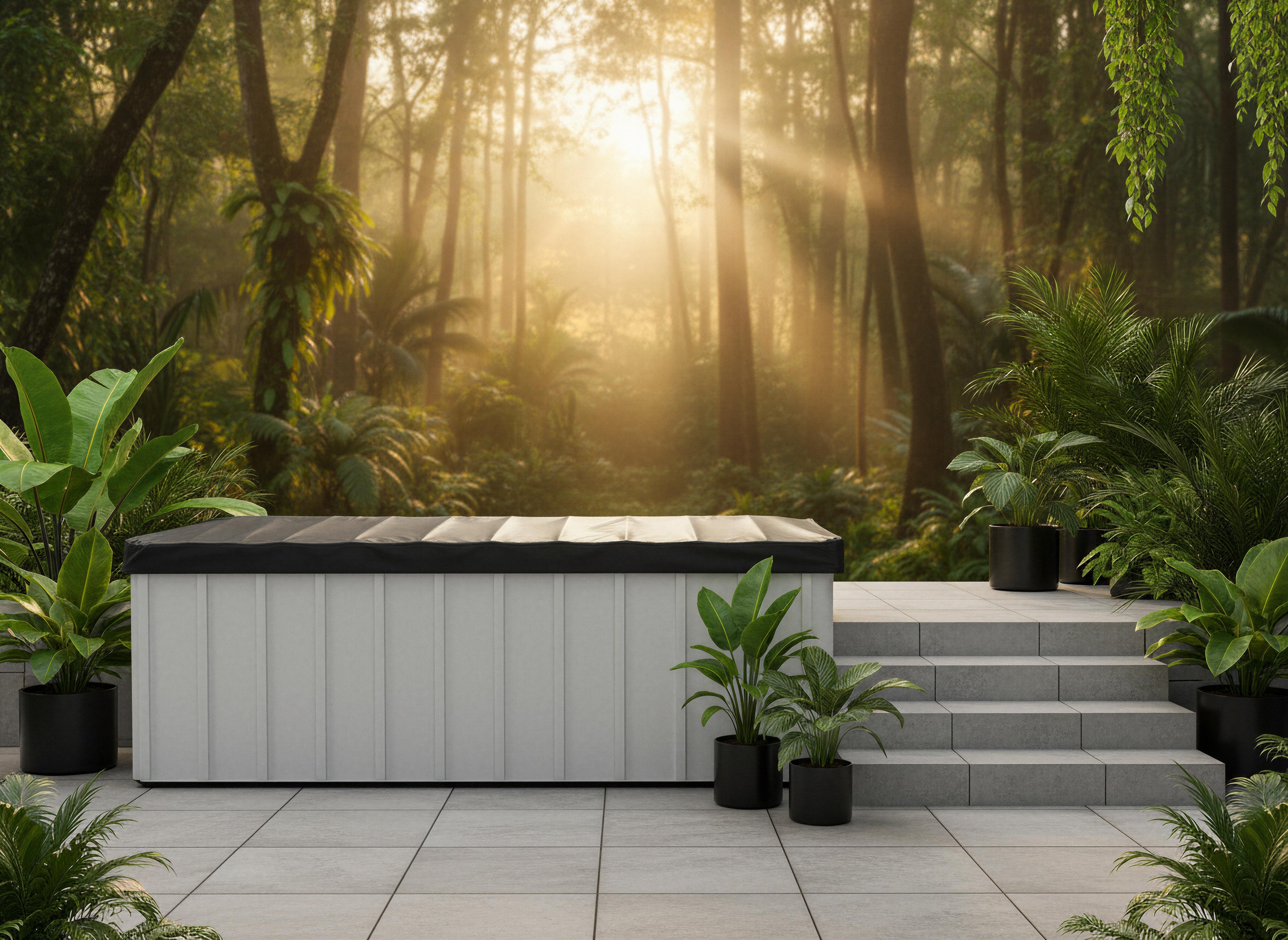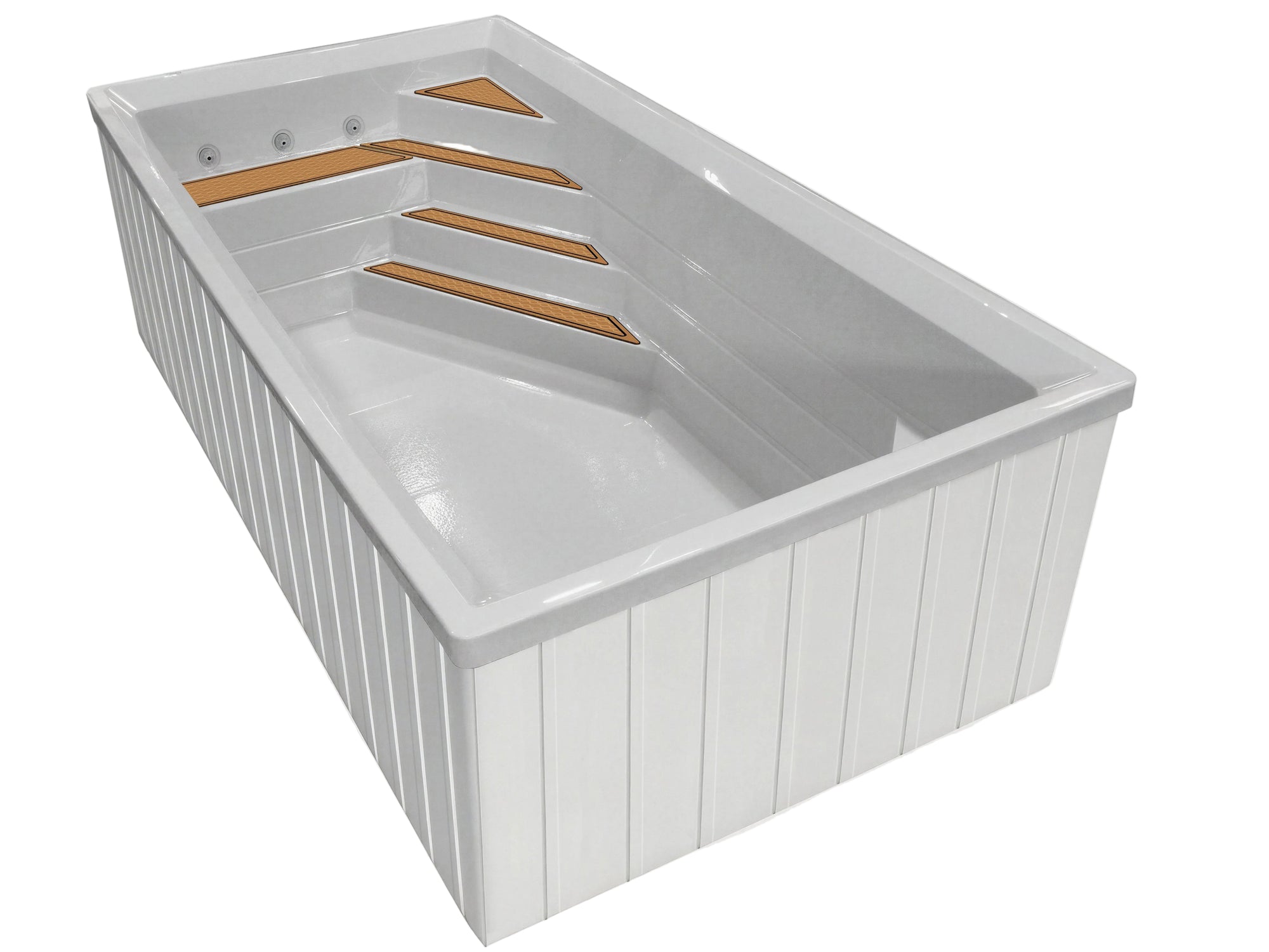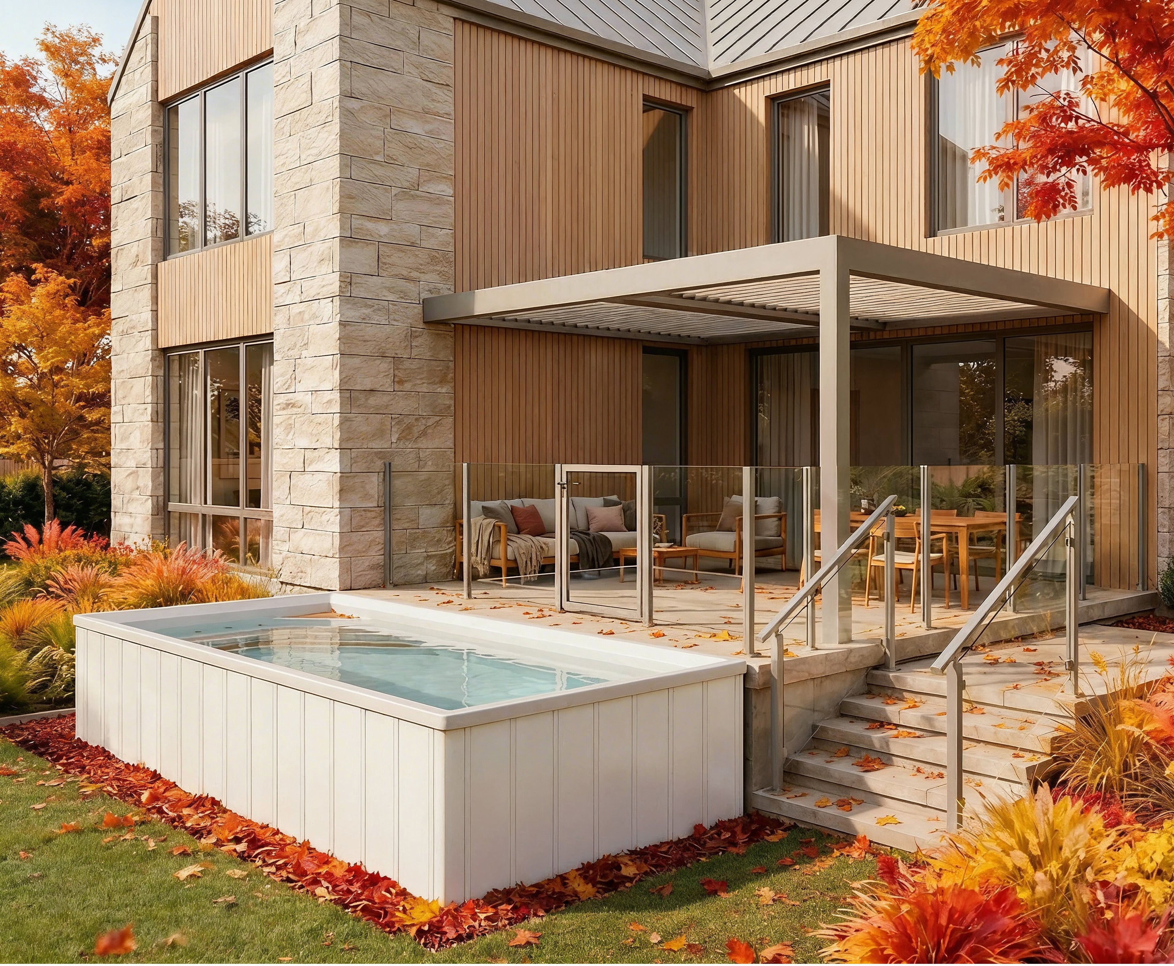 Conçue en acrylique et fibre de verre, la piscine Urbani4 intègre une isolation performante, incluant une chambre à air et l’isolation RMAX®, afin d’aider à conserver la chaleur et soutenir une utilisation quatre saisons. Les équipements, chauffe-eau électrique, filtration par cartouche et pompe à vitesse variable, sont soigneusement dissimulés sous la structure et bien isolés, pour un rendu propre et haut de gamme.