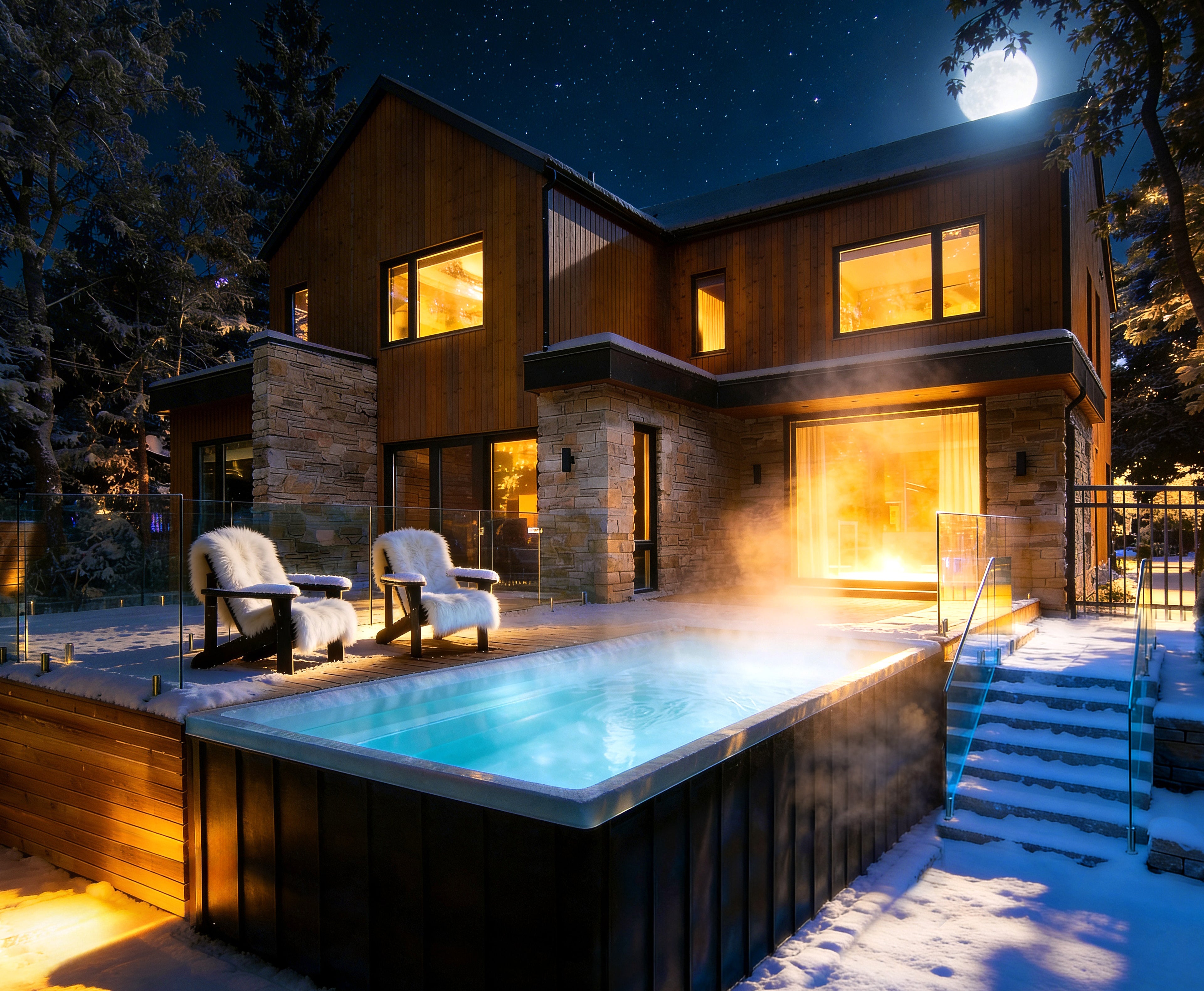 La piscine Urbani4 repose sur une structure robuste, conçue pour affronter les conditions d’ici et préserver le confort, même en plein hiver. Son isolation de qualité aide à retenir la chaleur, à réduire les pertes énergétiques et à maintenir une performance stable lorsque les températures chutent. Les composantes essentielles, dont le chauffe-eau et la pompe, sont intégrées et discrètement dissimulées sous l’escalier et la structure.