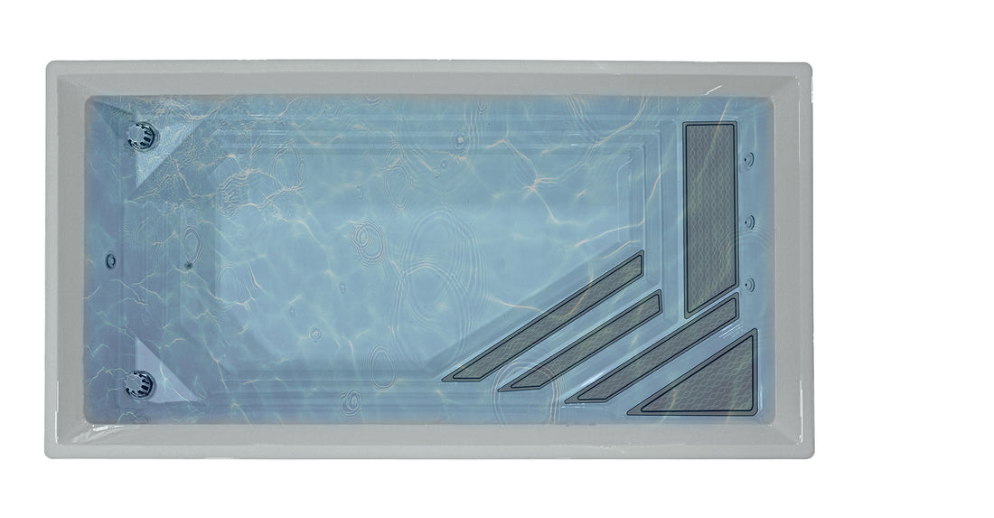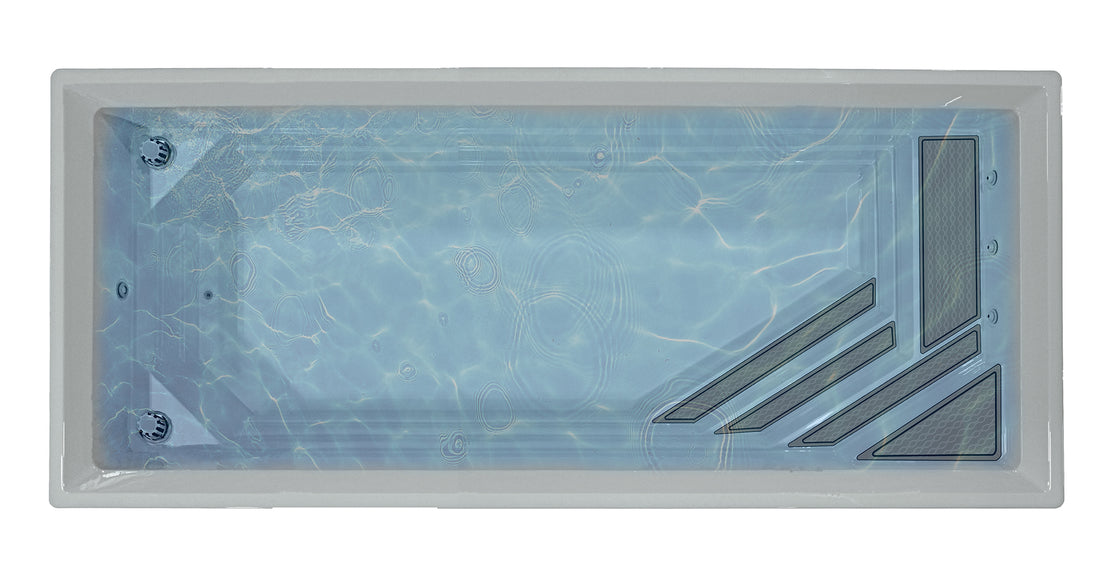 Chaque détail de la piscine Urbani4 est conçu pour allier esthétique et aisance d’utilisation. Son moule intègre une banquette élégante avec marches en coin, idéale pour s’asseoir, relaxer ou accompagner l’entrée dans l’eau en douceur. À cet endroit, trois retours d’eau optimisent la circulation pour une filtration efficace, tout en pouvant offrir une sensation de jets massage. Le tout, dans un design épuré qui met en valeur votre aménagement extérieur.