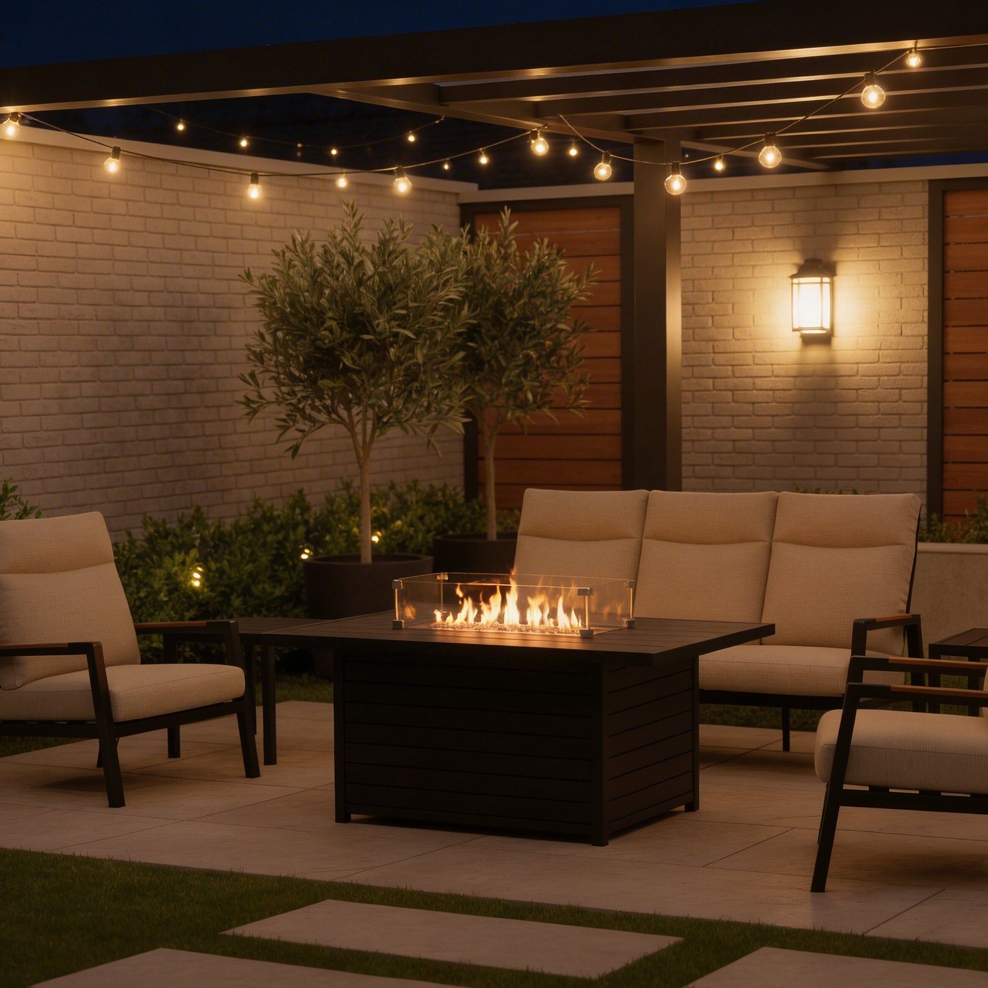 Ajoutez une touche d’élégance et de convivialité à votre terrasse avec cette table de foyer rectangulaire au propane. Sa structure en aluminium noir lui confère une grande robustesse tout en offrant un style moderne et raffiné. Grâce à sa puissance de 50 000 BTU et à son coupe-vent en verre, elle crée une ambiance chaleureuse et agréable pour profiter pleinement de vos soirées en extérieur. Une housse de protection est incluse pour préserver votre foyer lorsqu’il n’est pas utilisé.